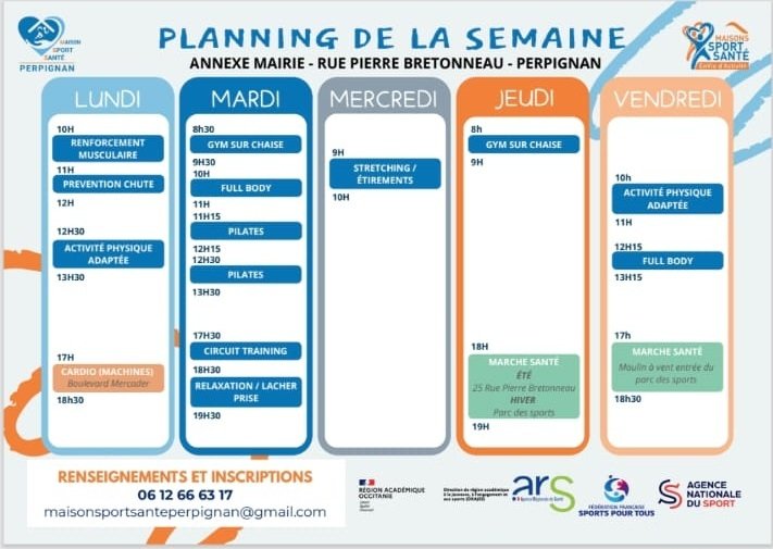 Franck Scheveig – le Président – Fabrice De Jong – le Secrétaire – Florence Brunet – la Trésorière et Coordinatrice – les bénévoles : Christophe Lesne – Trésorier adjoint – Claire Barrois – Secrétaire adjointe – les Enseignants APA : Laetitia Gouyon ; Justine Figueres ; Maéva Schrotz Delgado et Henri Vasselo de la Maison Sport Santé de Perpignan vous souhaitent une excellente année à venir, remplie de projets, de bonheur et surtout en bonne santé avec plein d’activités physiques.