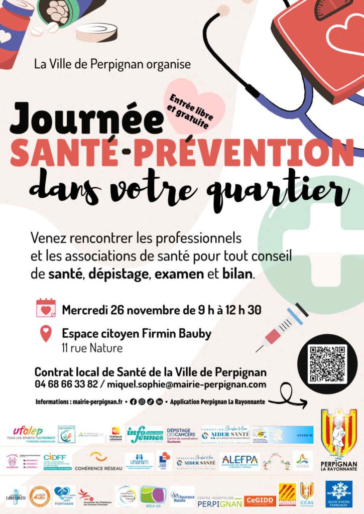 La ville de Perpignan organise une seconde journée « Prévention Santé » dans votre quartier le 26 novembre de 9h à 12h30 à l’Espace citoyen Firmin Baudy