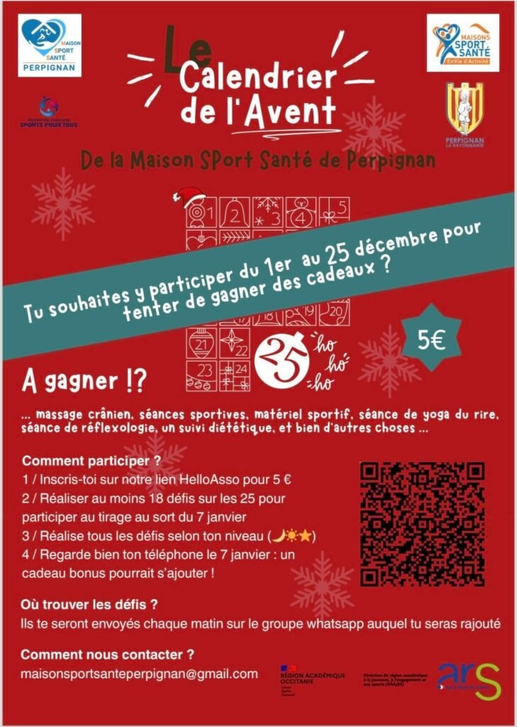 La Maison Sport Santé de Perpignan est heureuse de vous présenter son calendrier de l’avent sportif!